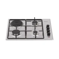 Candy Idea kombinirana kuhalna plošča CMGH31X/1 v inox barvi odlikuje preprost a inovativen dizajn. S to kuhalno ploščo boste zaradi kombinacije dveh tehnologij kuhanja izkusili prilagodljivost brez primere. Ima tri plinska in eno električno kuhališče. Za varnost poskrbijo elektromagnetna varovala za vsak gorilnik posebej. Upravljanje je mehansko z gumbi, ki so nameščeni na desni strani plošče.