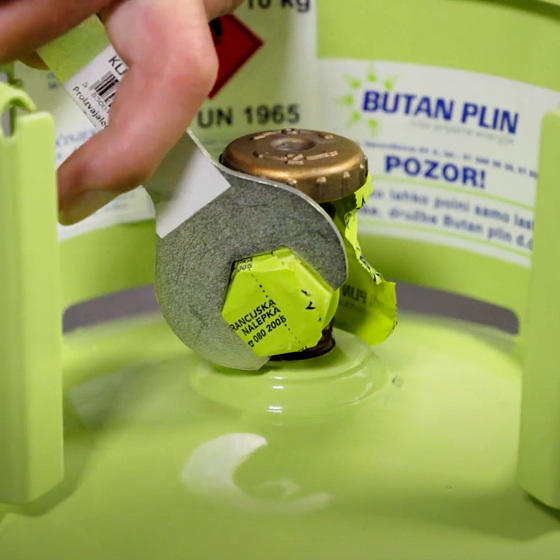 Ob vsakem nakupu ima na ventilu zaščitno folijo z oznako Butan plin, kar zagotavlja, da je: